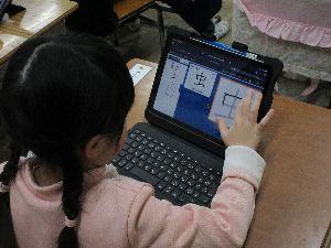 今日から、新しいタブレット(iPad)の使用を開始しました。子どもたちは、新しいタブレットに目を輝かせていました。まずは初期設定。1年生は、自分のメールアドレスを入れることに苦戦していました。「saitama」と入力するにも、読み方もキーボードの場所も分からず、キーボードの中から同じアルファベットを探していきます。キーボードに書いてある「かな」で、「saitama」ではなく「とちにかちもち」と入力するよう指導している場面もありました。これから大切に、そして効果的に活用していってほしいと思います。ご家庭でも、使い方についてお子様と確認していただけますと幸いです。