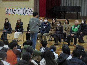 今日は、いつもお世話になっている地域の皆様をお招きし、ありがとうの会を行いました。学校運営協議会委員、交通指導員、防犯ボランティア、図書ボランティア、PTA、あおぎりっ子学童指導員の皆様が参加してくださいました。会では、代表児童が感謝の気持ちを伝えるとともに、花束と子ども達が準備したお手紙をお渡ししました。お越しいただいた皆様を代表し、久世様より「子ども達からの挨拶や声掛けがボランティア活動をする力になっている。」とお話をいただきました。このような会を開いて感謝の気持ちを伝えるだけでなく、日頃から子ども達が感謝の気持ちを伝えたり、進んで挨拶したりする気持ちを育むことができるよう、指導してまいります。お越しいただきました皆様を始め、いつも温かく見守っていただいている地域の皆様に改めて感謝申し上げます。