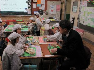 今日は、第3回学校運営協議会を行いました。協議会の中で、協議会委員の皆様と6年生の代表児童の話合いの時間を設定しました。子どもたちは、おおきな時間(総合的な学習の時間)の学習を通して、①できるようになったこと、②もっとやりたかった活動、③地域への思い等について自分達の考えを熱心に伝えていました。協議会終了後は、委員の皆様に1年生のクラスで児童と一緒に給食を召し上がっていただきました。子どもたちの実態や思いを委員の皆様に知っていただき、今後さらによい連携を図ることができればと思います。