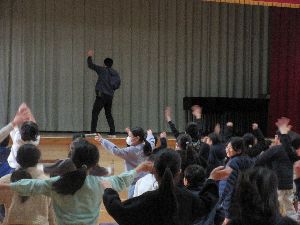 今日は、あおぎりっ子タイム(長い昼休み)にミニライブを行いました。ミニライブは、希望者がエントリーして自分が見てもらいたいものを発表するイベントです。今回のミニライブから1年生がエントリーできるようになったため、たくさんの応募があり、体育館・音楽室・多目的室の3会場を使用して行いました。グループでダンスを発表する子、一人でダンスを発表する子、けん玉やお手玉など学習した昔遊びを発表する子など、様々な発表があり、会場には温かい拍手やたくさんの笑顔が溢れました。短い時間の発表でしたが、ご参観いただいた保護者の皆様、ありがとうございました。