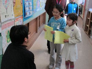 校内では、1年生が国語の学習で、様々な先生へのインタビュー活動を行っていました。「先生の好きな教科は何ですか?」「どうして先生になろうと思ったのですか?」など、自分たちが考えた質問をしています。答えを聞いて終わりではなく、「それはなぜですか?」「他にもありますか?」など、追加の質問をする児童も多く、先生が答えに窮する様子も見られました。1年生と6年生の姿を見て、学習の積み重ねの大切さを改めて感じました。