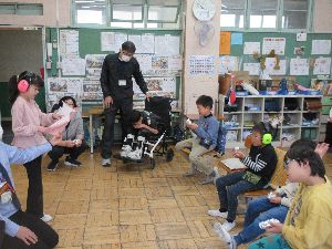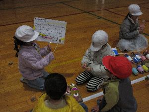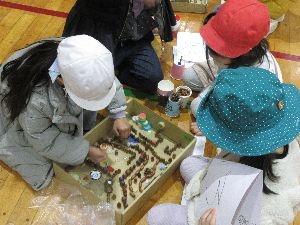 今日は、1年生が大宮幼稚園、あおぞらウィンクルム保育園、ゆりかご保育園の園児のみなさんを招待し、体育館で秋のおもちゃまつりを行いました。これは、園児のみなさんに、1年生が作ったおもちゃで遊んでもらうことを通し、保幼小の交流を深めることをねらいとしています。このおもちゃは、大宮公園に落ち葉や木の実など秋を集めに行き、それを使って作った物です。マラカス、迷路、どんぐりゴマ、アクセサリーなど、様々なおもちゃを作り、園児のみなさんに楽しんでもらいました。いつもは一番下の学年の1年生ですが、園児のみなさんに優しく声をかけたり手をひいたりとお兄さんお姉さんとして張り切る姿がたくさん見られ、成長を感じました。ご来校いただいた皆様、ありがとうございました。