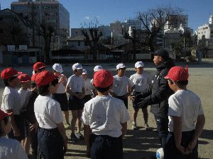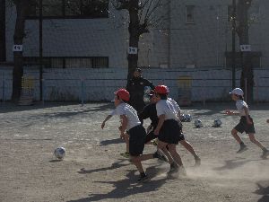 今日は、大宮アルディージャの皆様にお越しいただき、4年生がスクールキャラバンを行いました。まずは、ボールを持って鬼ごっこをしたり、ボールを高く投げ上げて拍手の回数を数えたりと、ボールと触れ合う活動をたくさん行いました。その後は男女分かれてのミニゲーム。誕生日が1月~6月までの人、遊園地と水族館だったら遊園地が好きな人、などの質問に当てはまった児童が試合に出場し、それ以外の児童は手をつないでゴールを守ります。サッカーの得意不得意にかかわらず、みんなが楽しみながら活動していました。最後は、サッカーに限らず物事にチャレンジする大切さ、友達と協力することの大切さなどについてお話しいただきました。RB大宮アルディージャの皆様、ありがとうございました。